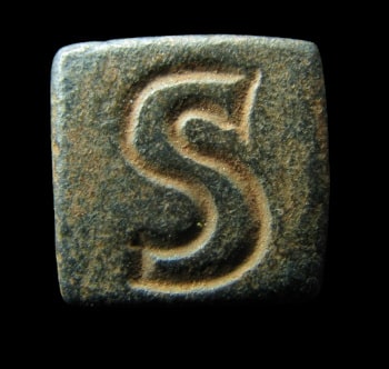 Parallèlement à cette ornementation symbolique, de nombreux poids adoptent un marquage purement fonctionnel consistant en l’inscription de la lettre correspondant à la valeur monétaire contrôlée.