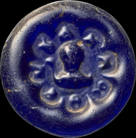 - Poids byzantin en verre, anc. coll. Wilhelm Fröhner (1835-1925), BnF, MMA, Froehner.verre.17 (ark:/12148/btv1b113577222).